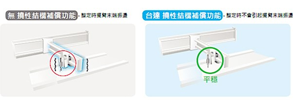 低頻擺蕩抑制 對(duì)高撓性機(jī)臺(tái),有效抑制機(jī)構(gòu)振蕩,提升運(yùn)轉(zhuǎn)效能 主動(dòng)式演算抑制法則,可避免末端機(jī)臺(tái)抖動(dòng),增快運(yùn)轉(zhuǎn)速度