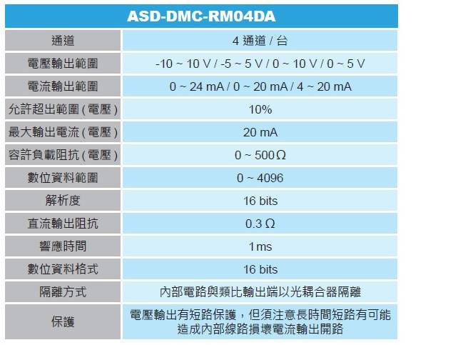 DMCNET 4 通道模擬輸出模塊 - ASD-DMC-RM04DA 分布式遠程模擬輸出擴展模塊,可提供 DMCNET 主站的主機遠程控制模擬信號