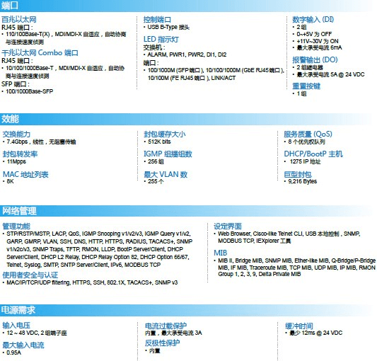 完整L2網管功能: VLAN, QoS, LACP, IGMP & SNMP v1/v2c/v3等
